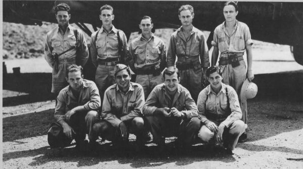 MSgt Gordon Manuel (first row, far right) with crew of the B-17
